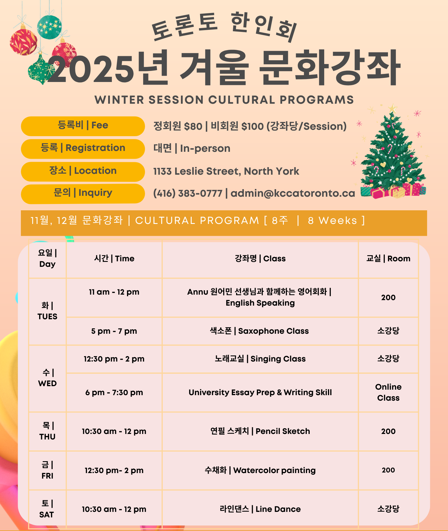 - 문의: 416-383-0777 / admin@kccatoronto.ca
