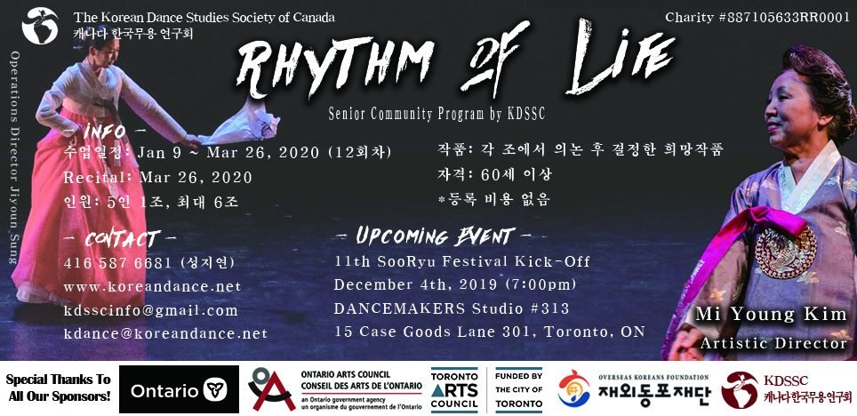캐나다 한국무용 연구회에서 주최하는 Senior Community Program "Rhythm of Life" 정보 공유 드립니다.