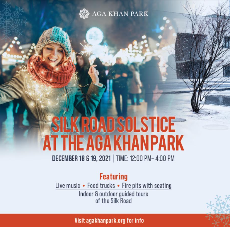 Aga Khan Park에서 12월 18일~ 12월 19일 이틀동안 연말 분위기를 즐길 수 있는 무료 행사가 열립니다.실내 & 야외 전시회 가이드 투어, 푸드트럭, 라이브 음악 등이 준비되어 있는 행사입니다.