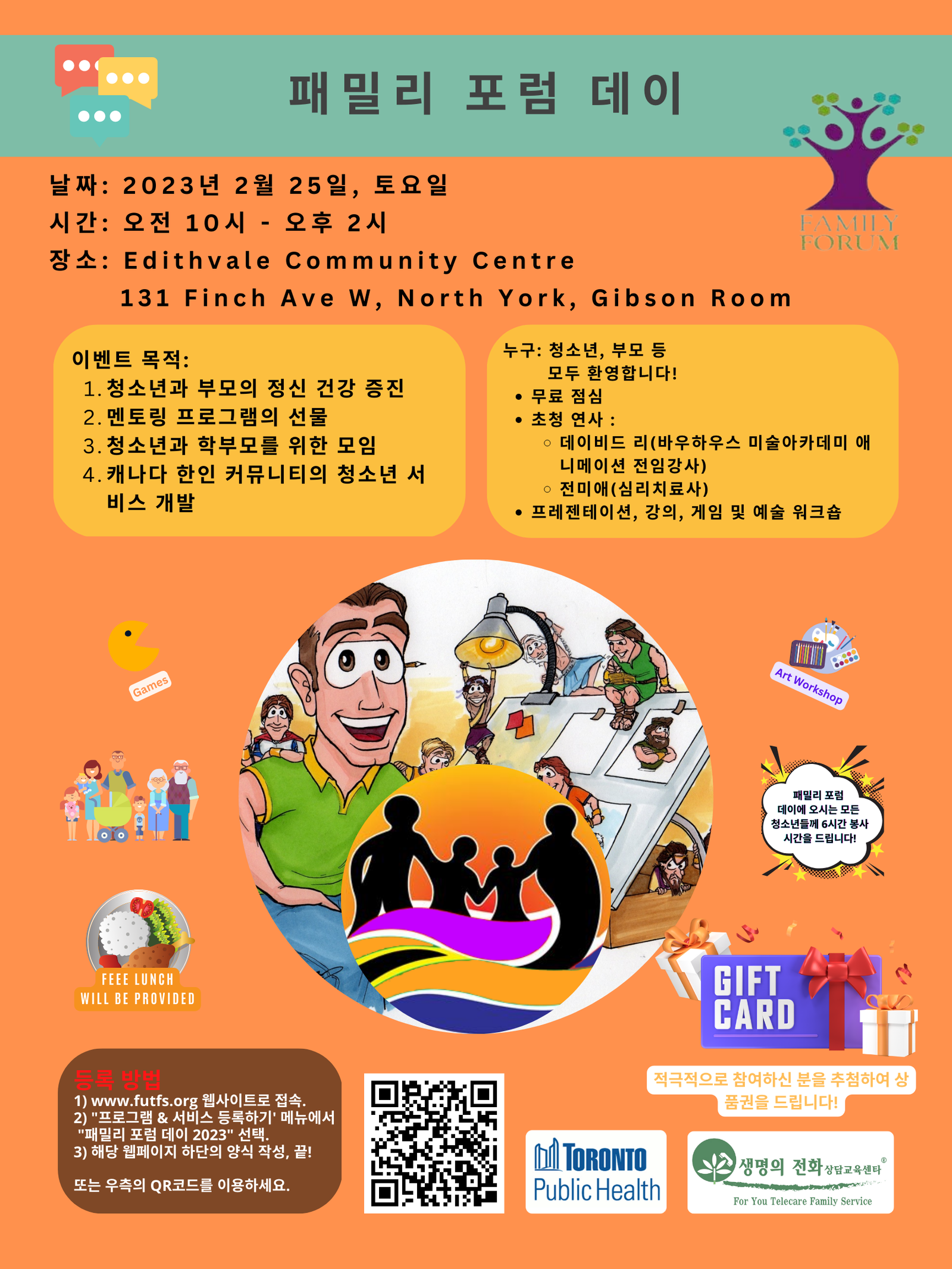 1) 패밀리 포럼 데이 2023 (1일 이벤트, 청소년의 경우 5시간의 자원봉사시간 제공)