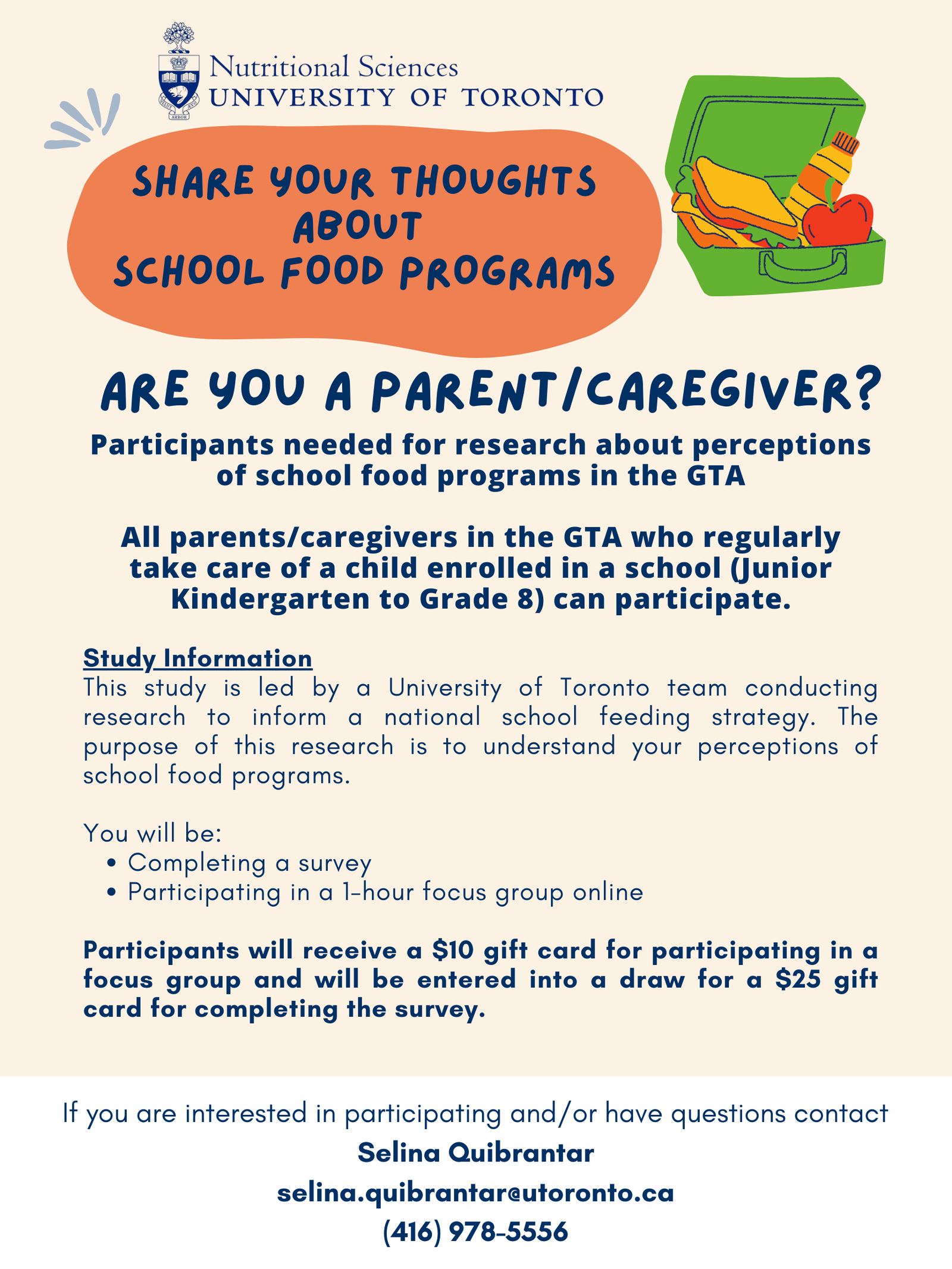인터뷰 대상: All parents/caregivers in the GTA who regularly take care of a child enrolled in a school (Junior Kindergarten to Grade 8) can participate (JK~8학년에 재학 중인 아이를 정기적으로 돌보는 GTA에 거주하고 있는 모든 학부모님 및 아이 돌봄자가 참여할 수 있습니다)