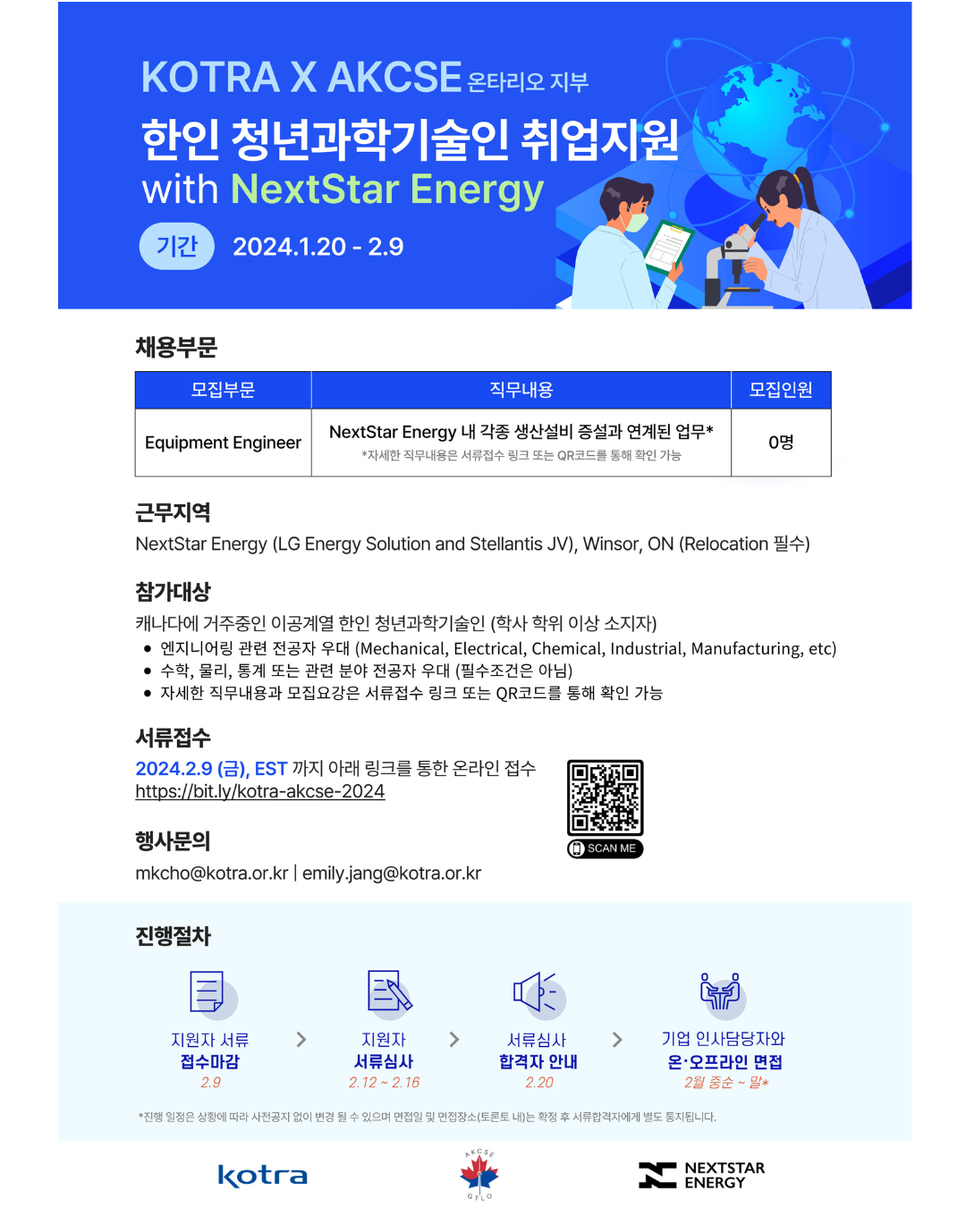 KOTRA X AKCSE 한인청년과학기술인 취업지원- NextStar Energy 채용공고