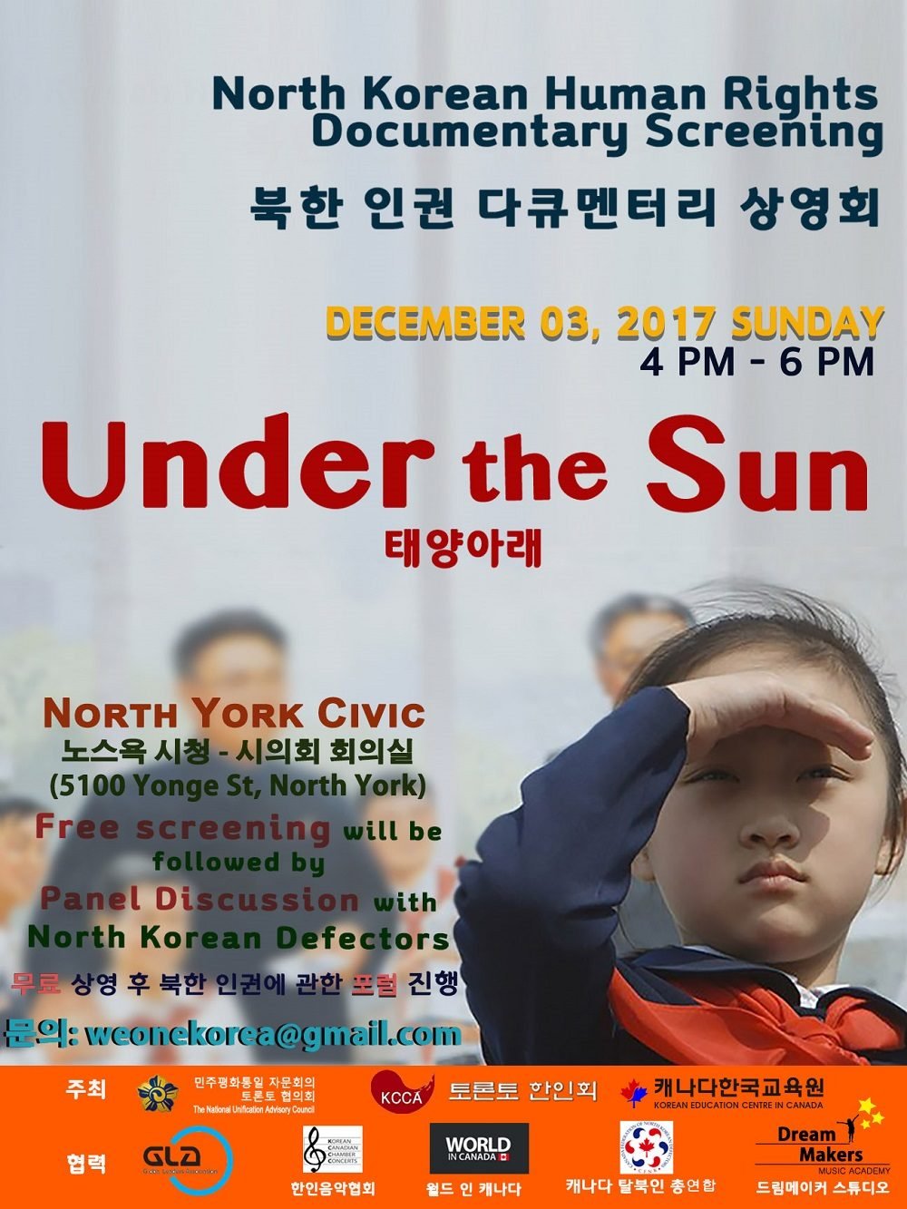 또한 북한 인권영화를 상영하고 이후에는 북한의 삶에 대해 이야기를 나누는 시간도 마련되어 있습니다. 이를 통해 캐나다의 청소년 및 청년들이 한반도 평화통일의 공감대를 가질 수 있는 시간이 되기를 바랍니다.