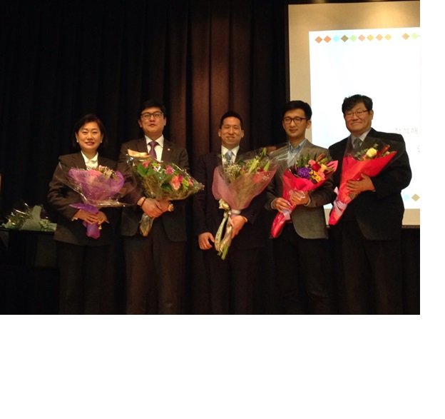 <보도자료 사진2: 당선인 전체사진 좌측부터 이영실(부회장),이기석(회장),조성욱(부회장), 신효범(이사선임이사), 방윤준(이사선임이사)>