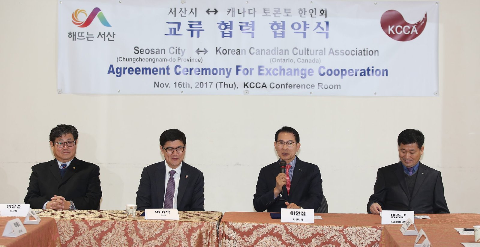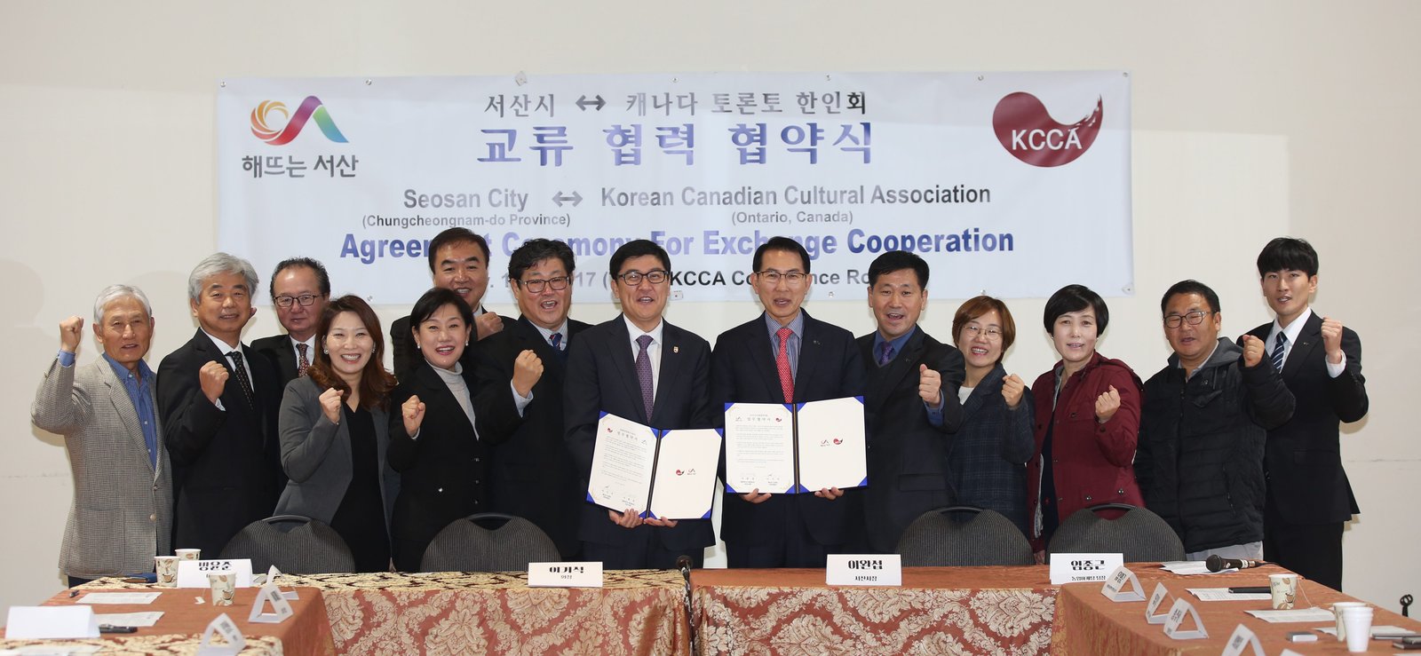 토론토한인회에서는 2017년11월 16일 (목)에 토론토한인회 소강당에서 토론토 한인회와 충청남도 서산시가 우호교류와 협력을 위하여 MOU체결 협약식을 가졌다.