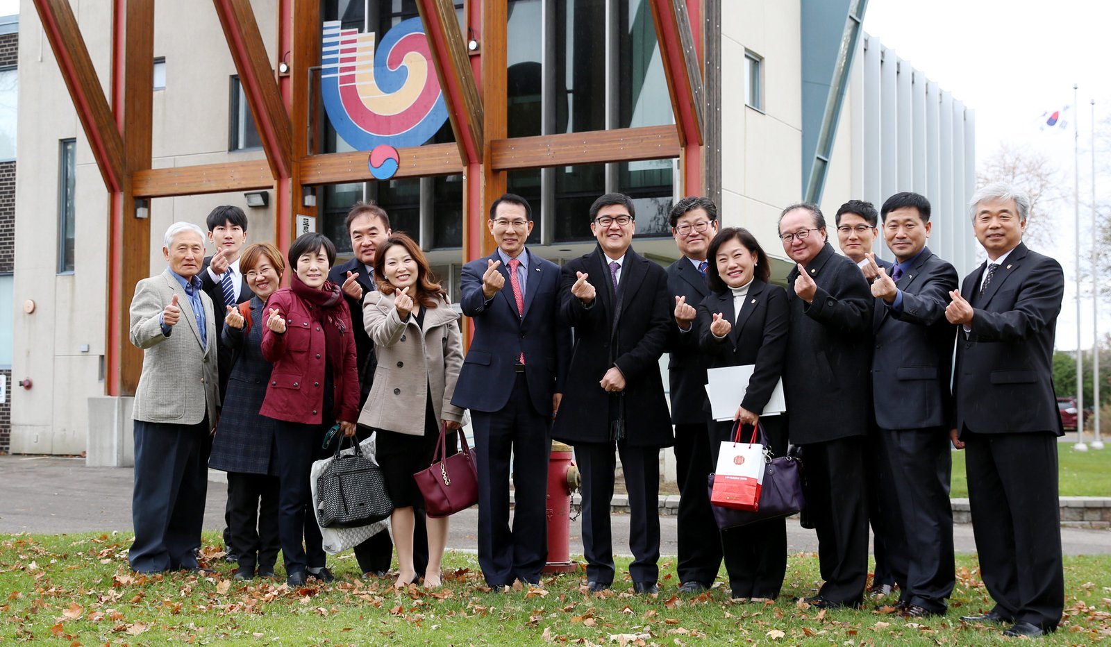 <자료사진 3> 토론토한인회관 앞에서 양측 대표들의 기념사진
