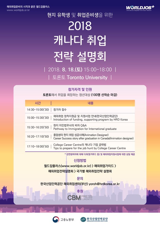 고용노동부와 한국산업 인력공단이 주관하고 CBM PRESS TORONTO 가 후원하는